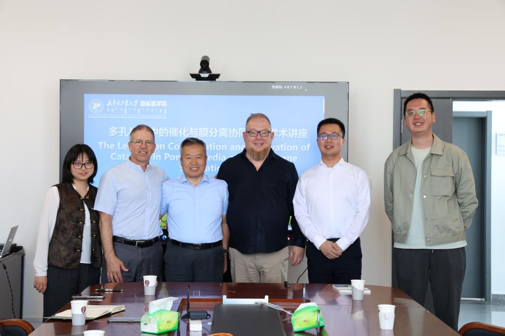 讲座结束后,Rothenberg教授向学院领导赠送了本人编著的中文版《催化原理与绿色应用》(第二版)教材,以表达对领导的诚挚感谢。在随后的座谈会上,学院领导与两位教授就联合申报国际合作项目、开展师生互访交流等合作事 宜进行了深入探讨。最后,与会代表与两位专家合影留念。此次讲座的成功举办,不仅为师生带来了国际前沿的学术视角,更开辟了学校与国际顶尖科研团队合作的新路径。