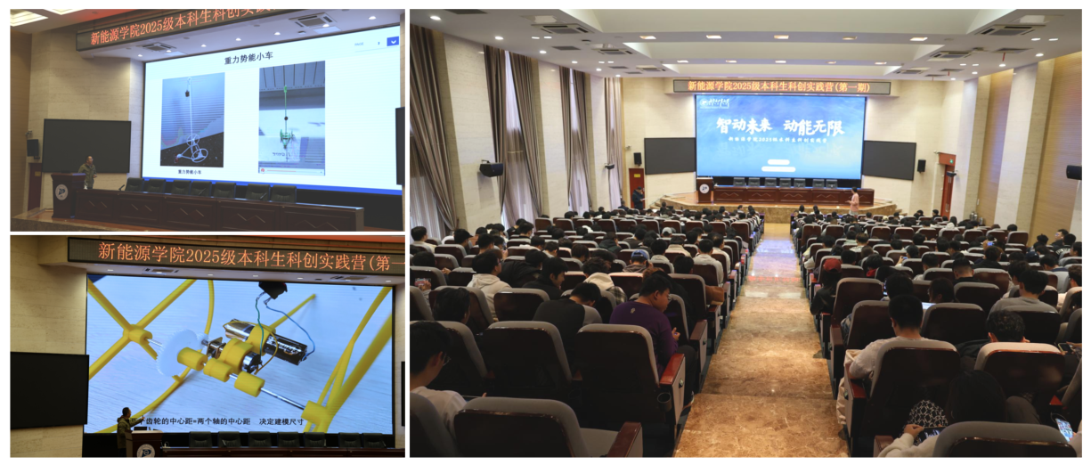 接下来,杜云刚教授面向全体2025级新生正式发布科创实践营首项实践任务,活动主题为3D打印为主,要求学生掌握3D建模与打印的基础操作,建立工程设计与制造的基本认知。通过具体项目任务,培养“分析-设计-迭代-验证”的工程思维习惯。整个实践营采用“理论学习→技能培训→项目实践→竞赛评比→成果展示”的递进式架构。本次培训,给了三个题目:分别是重力势能小车、未来太空车、逆风负重行走小车。学生根据自己的兴趣选择其中一个作为比赛题目。任务发布后,现场同学反响热烈,纷纷表示将以饱满的热情与昂扬的斗志迎接挑战,积极投身科创实践。