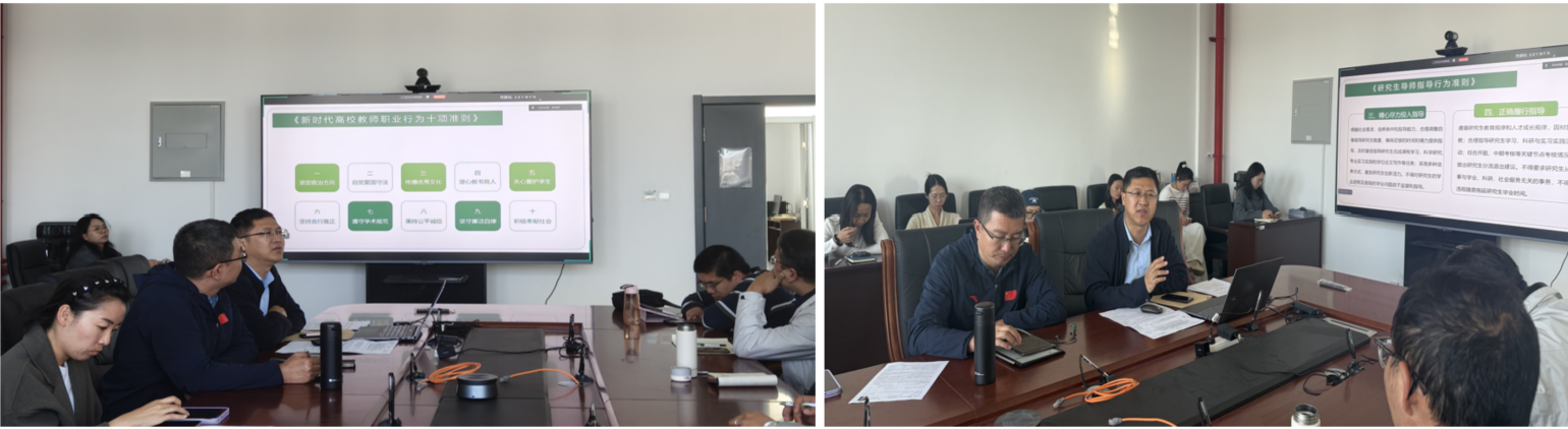 会上,首先传达了习近平总书记回信勉励全国特岗教师代表讲话精神。紧接着,组织全体教师着重学习了《新时代高校教师职业行为十项准则》和《研究生导师指导行为准则》,要求全体教师要认真学习、深刻领会,严格遵守准则要求,要自觉做到以德立身、以德立学、以德施教。最后,会议通报了近些年高校违反师德师风的典型案例,强调全体教师要以案为鉴,时刻保持警醒,坚决杜绝类似问题的发生。通过此次学习,老师们深刻认识到违反师德师风行为的严重性和危害性,进一步增强了纪律意识和规矩意识。