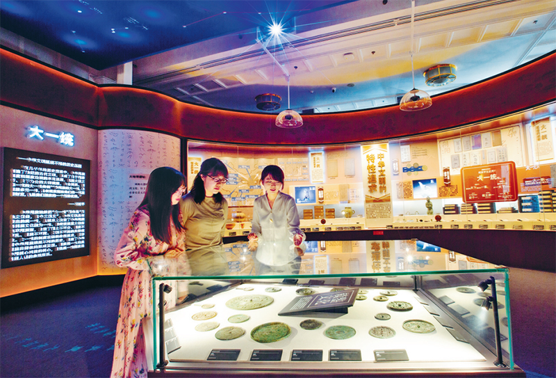 铸牢中华民族共同体意识文物古籍展正在北京民族文化宫展出,2900余件文物古籍及展品让观众近距离感受中华民族共同体形成发展的历史进程,聆听各民族交往交流交融的故事。图为2025年9月24日参观者驻足观看展品的现场照片。