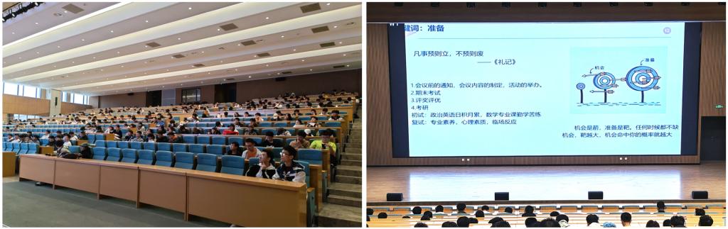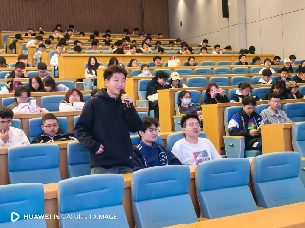 杨煜同学以“一位老学长的求学路”为主题,分别从选择、努力、舍得、准备四个关键词展开,讲述了自己从决定考研到最终成功上岸的心路历程。他强调了考研对未来工作以及个人发展的重要性,并以自己的经验告诉我们,考研需要抱有坚定的决心并为之奋斗,方能成功。